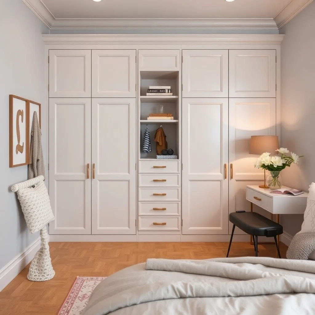 Custom wardrobes with soft-close fittings, lofts and study units, plus headboard paneling and electrical/AC points—space-optimised bedrooms in Greater Noida.